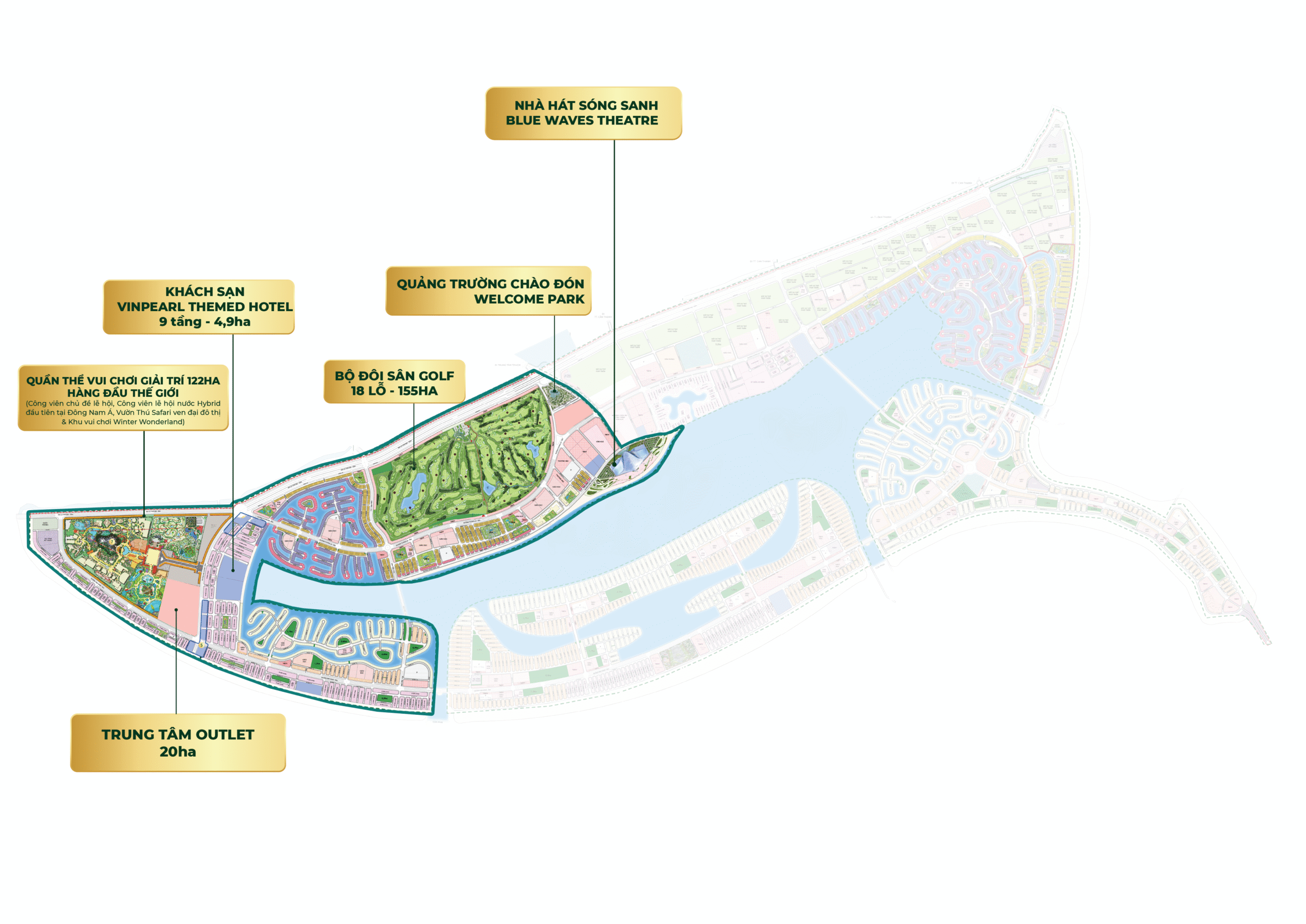 - 5 đại công viên chủ đề, mảng cây xanh rộng.